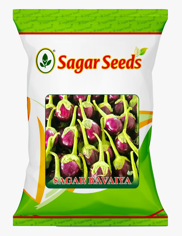 The SAGAR RAVAIYA F1 Brinjal is a hybrid variety developed by SAGAR BIO TECH PRIVATE LIMITED, designed for both commercial farming and home gardening. This variety is known for its high yield, early maturity, and attractive fruit characteristics